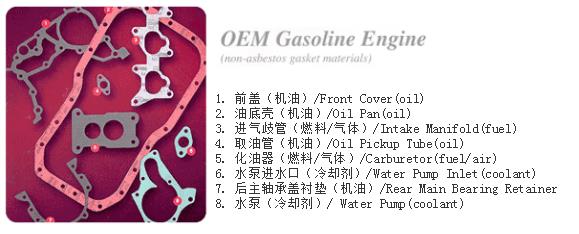 在OEM配套的汽油機(jī)市場(chǎng)中,正確選擇墊片材料選喲對(duì)材料的設(shè)計(jì)性能和應(yīng)用的部件結(jié)構(gòu)有充分的了解。最重要的是材料的性能一定要滿足甚至超過(guò)發(fā)動(dòng)機(jī)的應(yīng)用要求。因特費(fèi)斯墊片公司在為用戶(hù)選擇和推薦材料產(chǎn)品時(shí),我們不僅對(duì)選擇的部件作全面詳盡的分析,并且對(duì)選擇的材料進(jìn)行仿真性的測(cè)試,為保證材料產(chǎn)品應(yīng)用的可靠性。