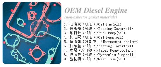 在OEM配套的柴油機(jī)市場中,正確選擇墊片材料需要對材料的設(shè)計(jì)性能和應(yīng)用的部件結(jié)構(gòu)有充分的了解。最重要的是材料的性能一定要滿足甚至超過柴油發(fā)動機(jī)的應(yīng)用要求。因特費(fèi)斯墊片公司在為用戶選擇和推薦材料產(chǎn)品時(shí),我們不僅對選擇的部件作全面詳盡的分析,并且對選擇的材料進(jìn)行仿真性的測試,為保證材料產(chǎn)品應(yīng)用的可靠性。
